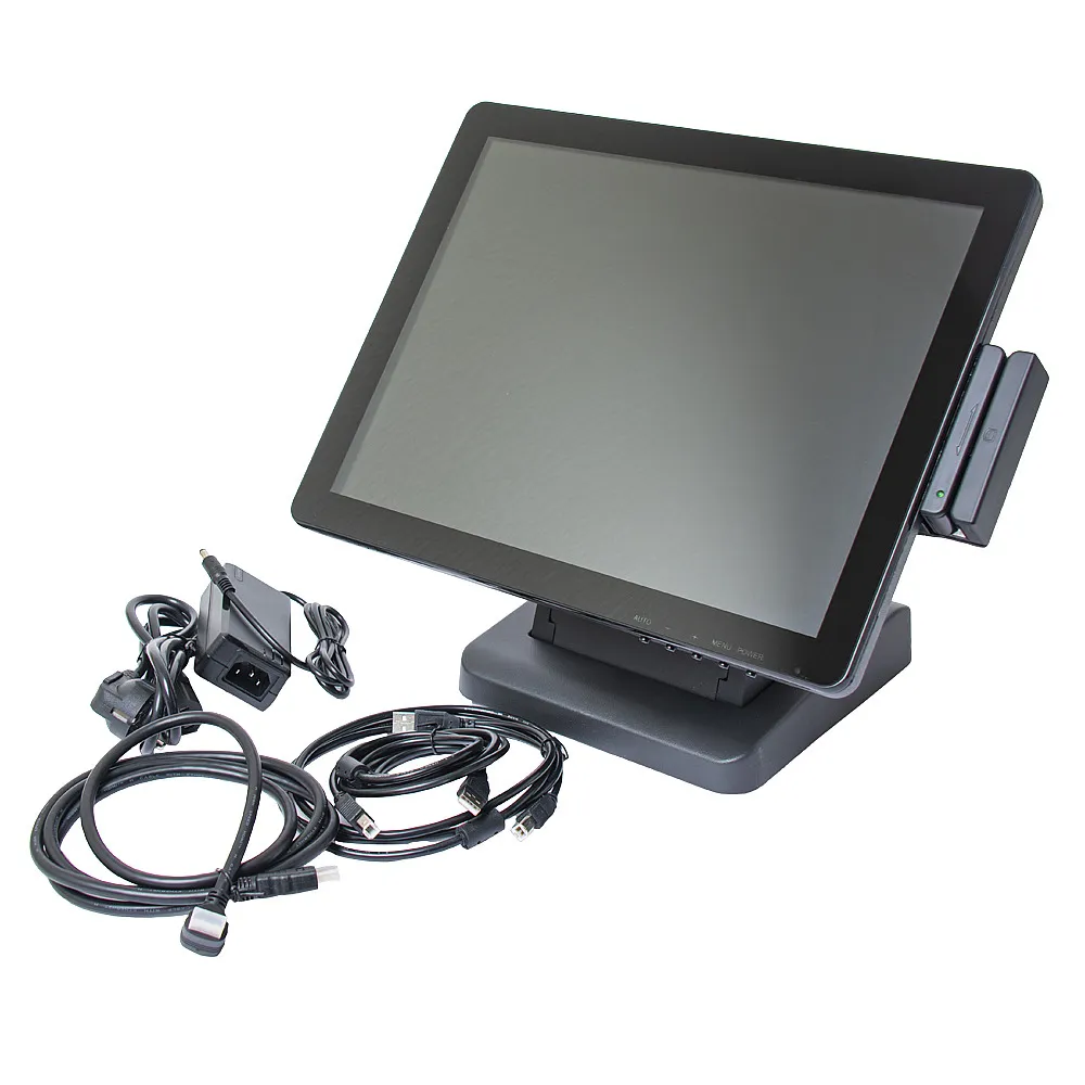 Монитор сенсорный Poscenter 15" (Touch, Г- обр. HDMI+VGA+AUX, Spk, двусторонний MSR, БП, подставка ), черный