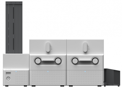 Доступна версия принтера для терминалов с множеством лотков, загрузка которых возможна до 3000 карт. Загрузка до 6 различных типов карт. Идеален для интеграции в автономные терминалы.