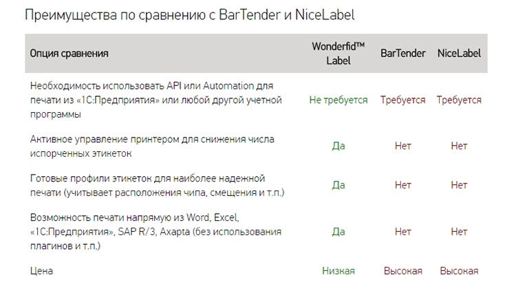 Wonderfid™ Label поддерживает большинство международных стандартов кодирования RFID-меток для маркировки таких вещей как товары, контейнеры, имущество, помещения и т.п.